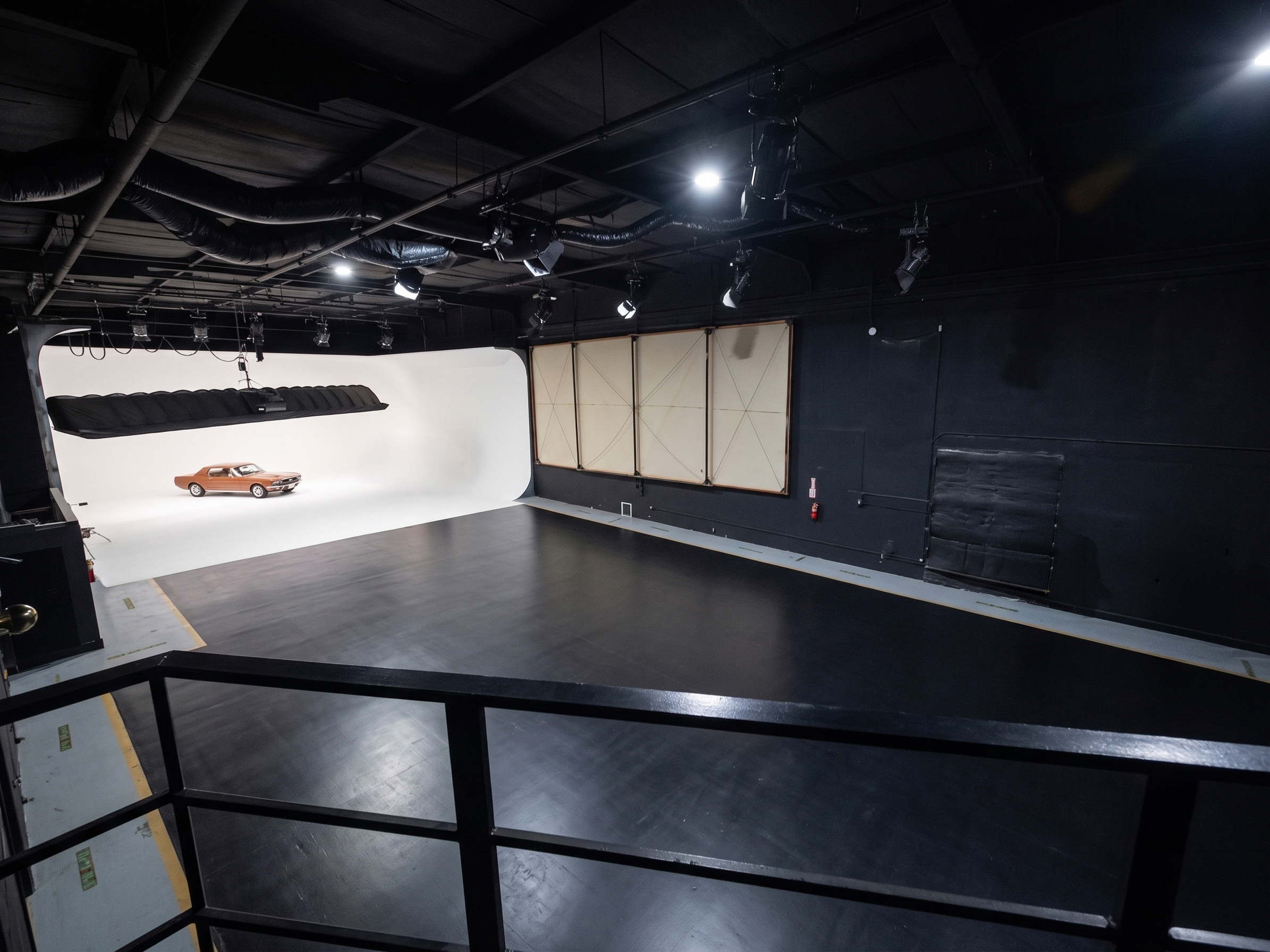 It's the combination most commonly spec'd for hero automotive beauty work. Upstairs VIP lounge access, dock-high loading, and fiber internet make the stage equally ready for client-facing shoots and live-streamed reveals.